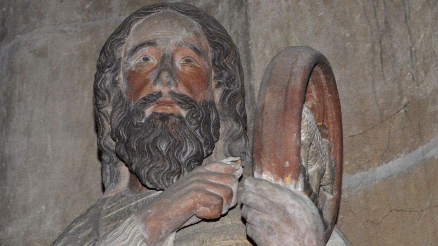 vainqueur de la mort, on le représente souvent tenant l’étendard de la croix, signe de la victoire sur la mort. C’est d’ailleurs cette image-là que désigne la statue de saint Jean-Baptiste.