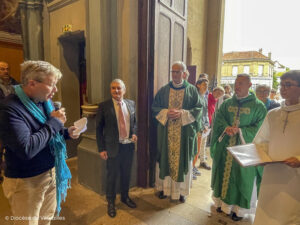 “J’entre dans une histoire et je rends grâce pour tous ceux qui m’ont précédé. (…) J’ai conscience que tout changement de curé est un peu bousculant, mais c’est l’occasion aussi de de se renouveler. Et puis, c’est la richesse de l’Église d’accueillir ainsi des serviteurs qui se suivent, ne se ressemblent pas toujours et apportent chacun leur propre charisme, leur propre don. (…) je garde cette idée de vase communicants. Nous sommes confiés les uns aux autres a résumé le P. Pierre Hervé Grosjean