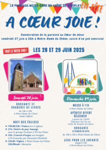 Nous avons la chance d’avoir des paroissiens très engagés pour faire connaître cette spiritualité du Sacré-Cœur. Evoqué en Conseil pastoral dès avril 2024, ce projet en vue des 350 ans des apparitions à Paray-le-Monial a reçu un accueil très favorable. De septembre 2024 à juin 2025 nous avons déployé tout un programme pour aboutir à cette consécration de la paroisse.