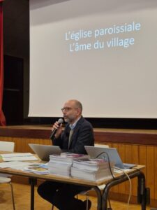 Mathieu LOURS, docteur en histoire, historien de l’architecture, spécialiste des architectures religieuses, a fait une entrée en matière appréciée de tous : « L’église paroissiale : l’âme du village ». Il est revenu sur l’histoire pluriséculaire du patrimoine bâti des paroisses devenu, au gré des vicissitudes de l’histoire, patrimoine des communes. Son message central a été de rappeler qu’un entretien régulier est le meilleur moyen de réduire la nécessité de grosses réparations.
