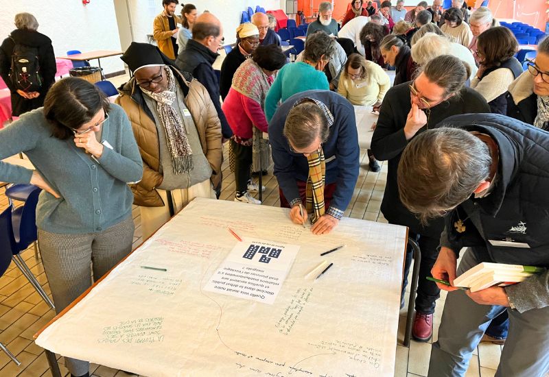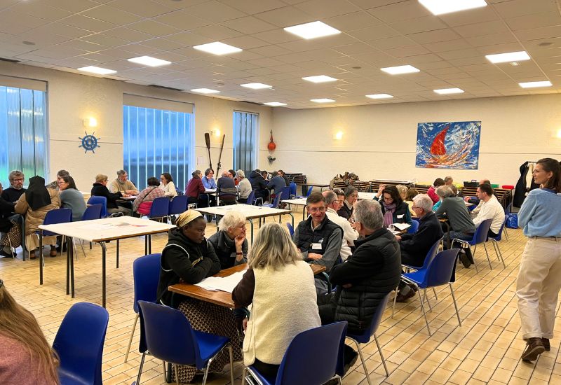 L’après-midi a été consacré à cinq ateliers collaboratifs, animés par Paula de Wailly et Charles Duplatre (CERAS). Les propositions, notées sur des nappes en papier, ont mis en lumière des initiatives existantes (comme les groupes Église verte) et des pistes innovantes, malgré les défis de mise en œuvre. L’accent a été mis sur la nécessité de sortir de l’individualisme et d’inscrire l’action écologique dans une dynamique collective et spirituelle.