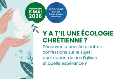 Le service pour l’unité des chrétiens vous invite à une journée œcuménique ouverte à tous sur le thème de l’écologie chrétienne vendredi 8 mai de 9h30 à 16h00 à sainte Pauline au Vésinet.